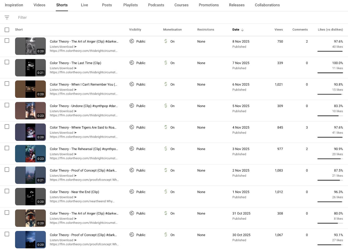 Every day I post one Kashie video to each platform. After a week or so, I added YouTube to the mix, since the videos are published as Shorts and don’t clutter my channel page like they would my TikTok or Instagram profiles.